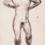 Mannelijk naakt met opgeheven arm.