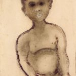 | omschrijving | Bedelende vrouw zit tegen muur (recto); schets van staande man (verso). |