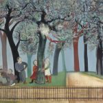 | omschrijving | Mannen op trap van huis, netten hangen te drogen, vrouwen op strand.(schetsontwerp van Schuurmans' Tearoom, uitvoering onbekend) |