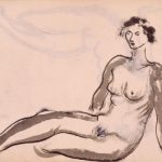 | omschrijving | Naaktstudie van vrouwelijk model (recto); studie van figuur (verso). |