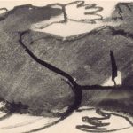 | omschrijving | Vrouw in lange avondjurk op de lage rug gezien (recto); dansend paar zwiert rond (verso). |