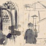 Man op de rug gezien; verso krabbels en studie van hand.