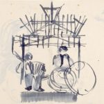 | omschrijving | Vrouw en profil; verso accordeonspelende man en drummende man onder afdakje. |