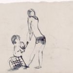 | omschrijving | Studie van een vrouw die een kind knipt (recto); tafel met drie stukken fruit (meloenpartjes of bananen) en donkere vrouw met de armen over elkaar geslagen, zonder hoofd (verso). |