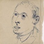 Portretschets van man met hoed en sigaret.
