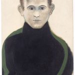 | omschrijving | Portret van rokende jongeman met rode trui en strikje om hals. |